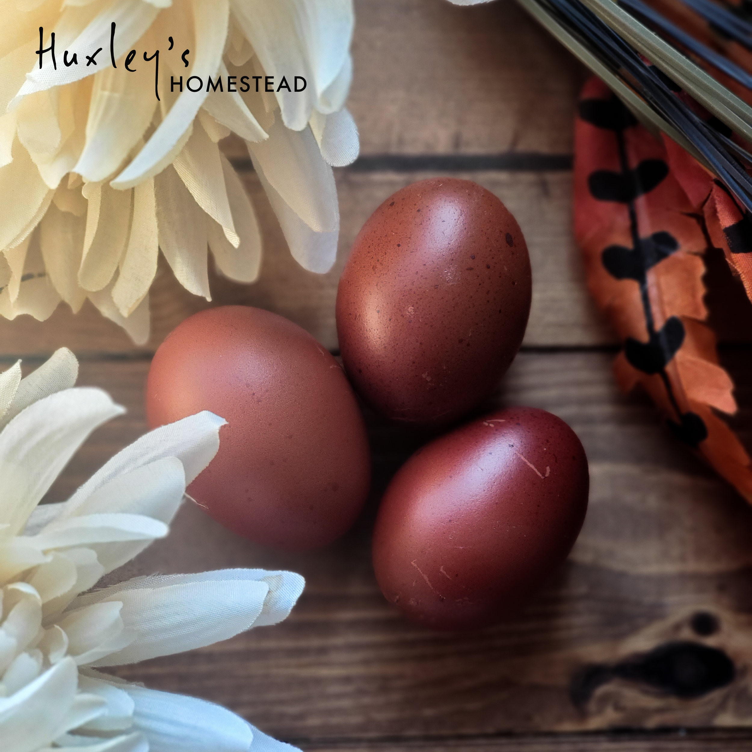 Our eggs are packaged with the utmost care and are the same eggs we personally use to hatch our chicks with a 90%+ hatch rate. Please remember that 50% development rate from shipped eggs is widely accepted as the standard, but you may see more or less. The reality is once your package leaves our farm, the United States Postal Service is in control of your eggs. In the past, our customers have had excellent service and hatch rates, but there is never a guarantee. We place our trust in the hands of every USPS worker across the United States. Therefore, Huxley’s Homestead cannot be held responsible for the care of your eggs during shipping or hatch rates.