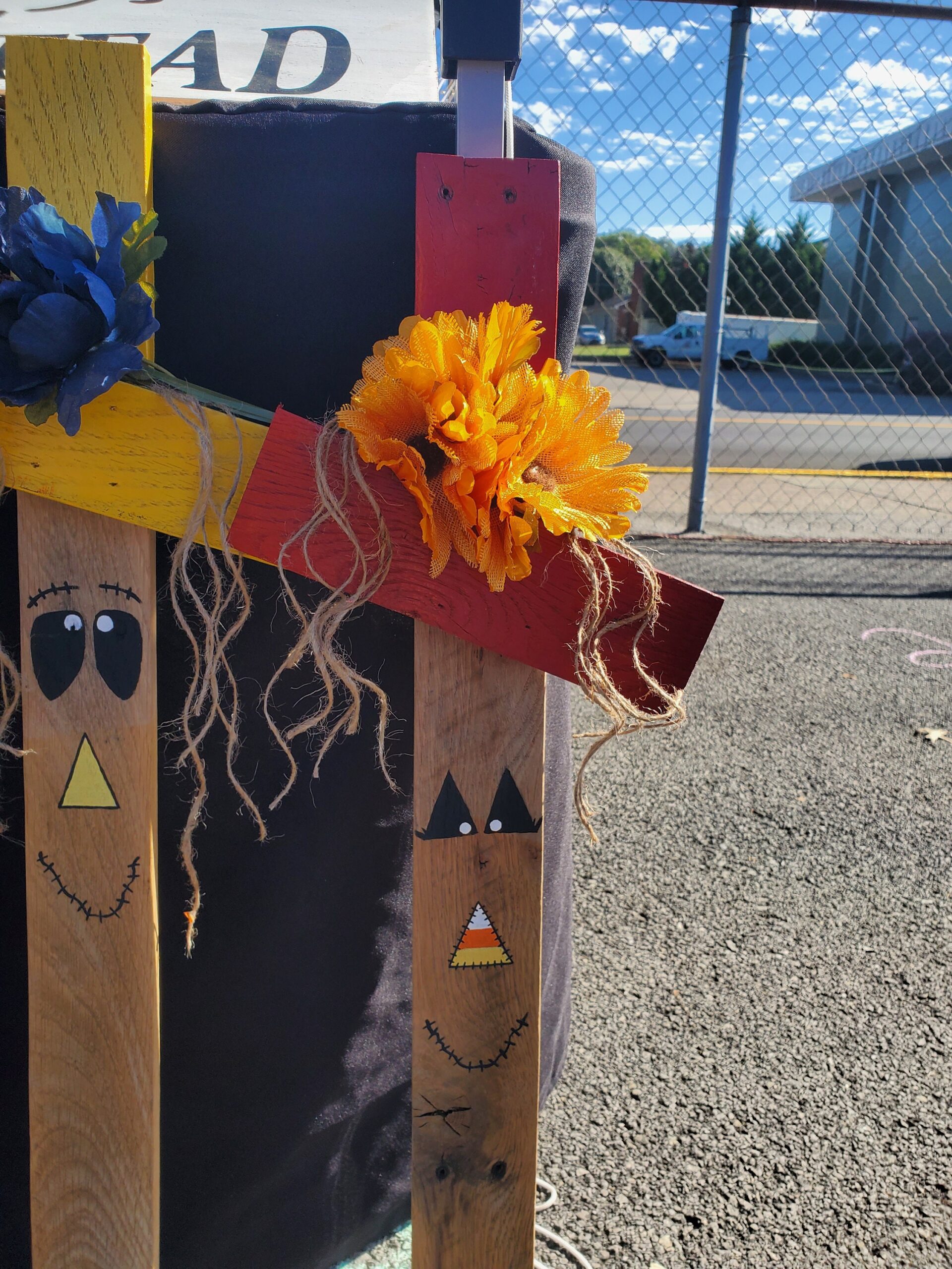 Our Scarecrows are all handmade and hand-painted! These are made from recycled pallet wood and stand about 32 inches tall on average. Wood knots and nail holes will vary and each piece is unique!
